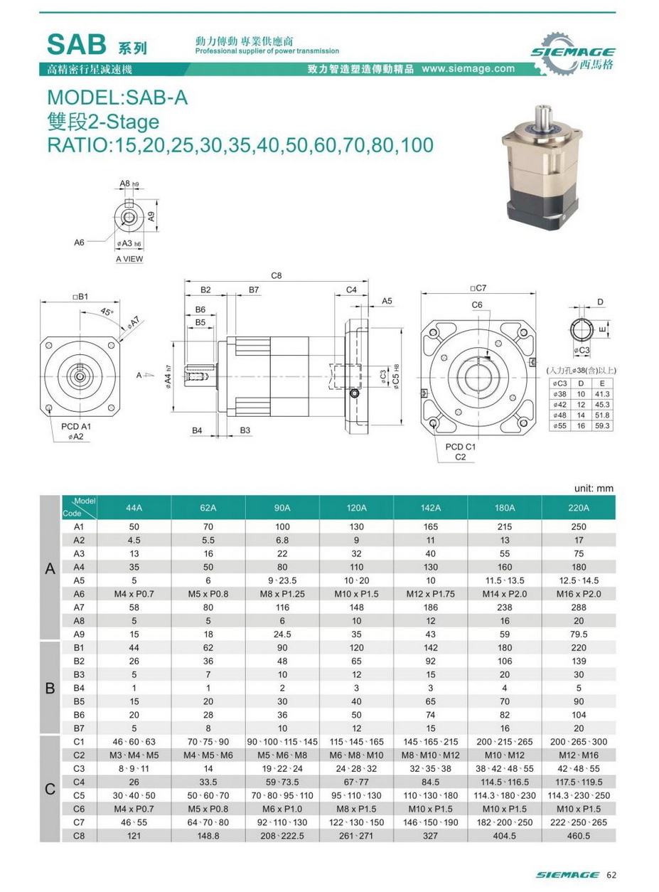 減速比:12/15/20/25/30/30/40/70/80/100。